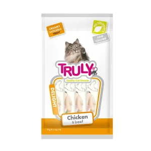 ترکیبات تشکیلدهنده تشویقی گربه ترولی: گوشت مرغ و ماهی ، تائورین ، امگا 3.6 ، مواد معدنی،سبزیجات، کلسیم